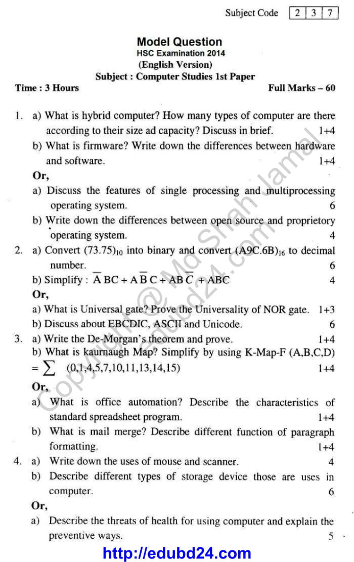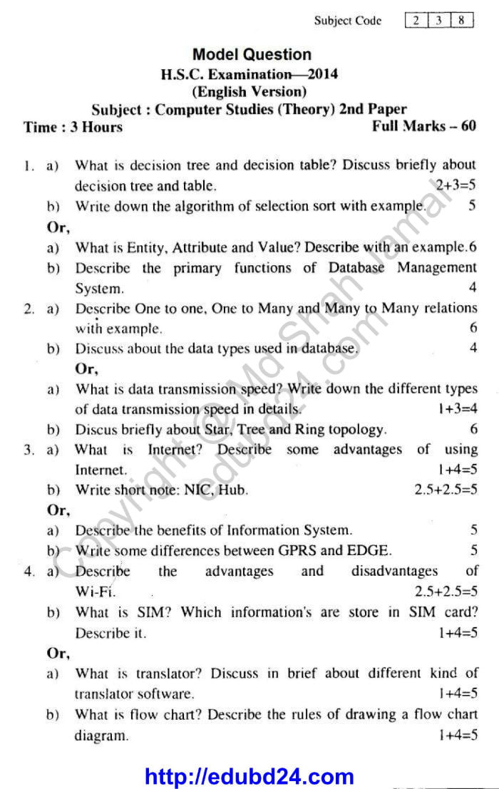 Computer Study Suggestion and Question Patterns of HSC Examination 2014